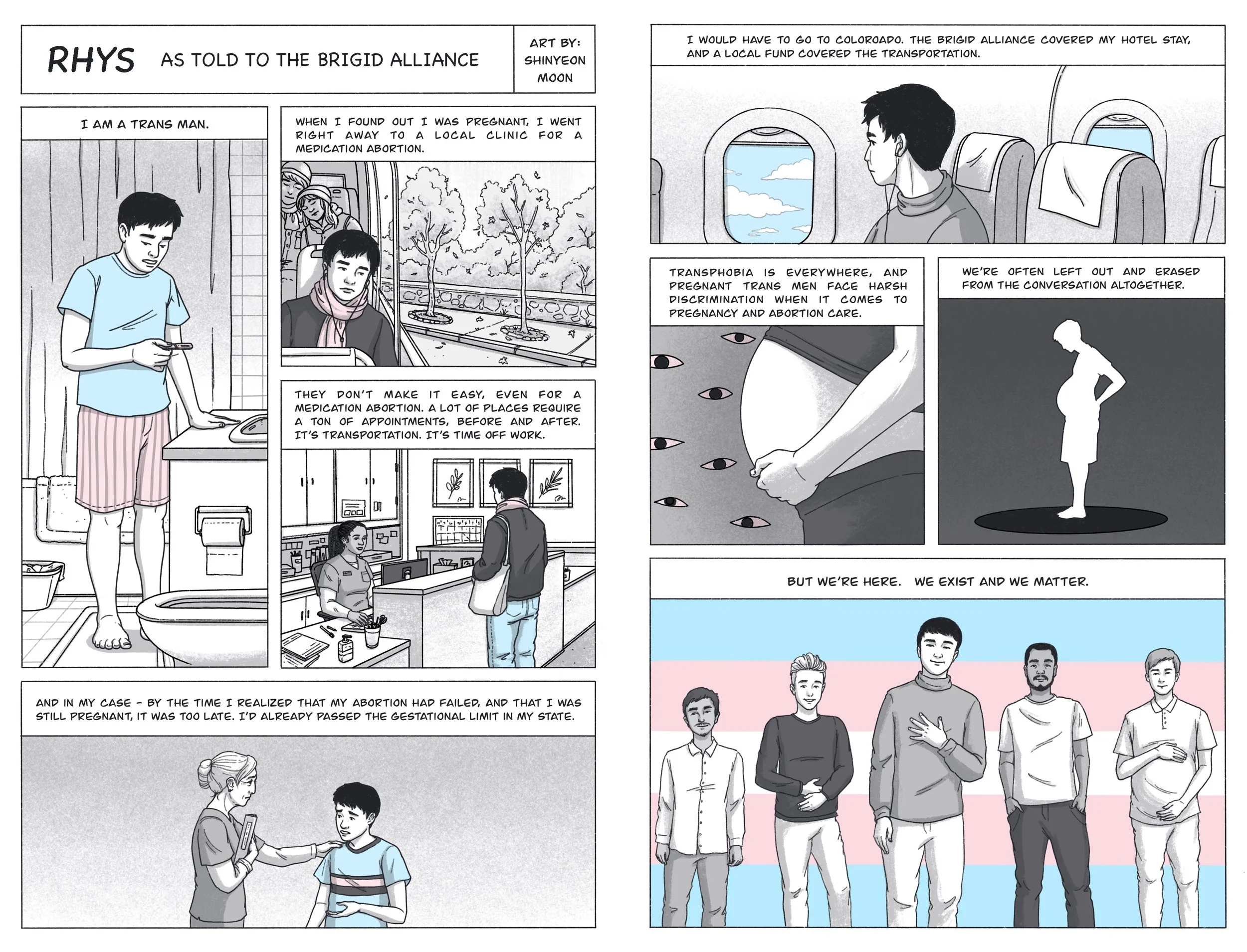 About the comic anthology: Personal accounts of the many difficulties of getting access to abortion and the lengths people (and the people who support them) have to go through/travel to in order to get the abortion care they need. Proceeds with benefit the Brigid Alliance who fund and help with logistics for people who have to travel to get access to care.